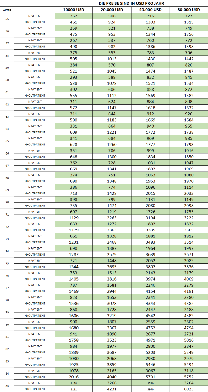 1 Vor Versicherungsbeginn ist eine Gesundheitsuntersuchung zur Feststellung von Vorerkrankungen erforderlich (die Untersuchung darf nicht älter als 30 Tage sein). Falls